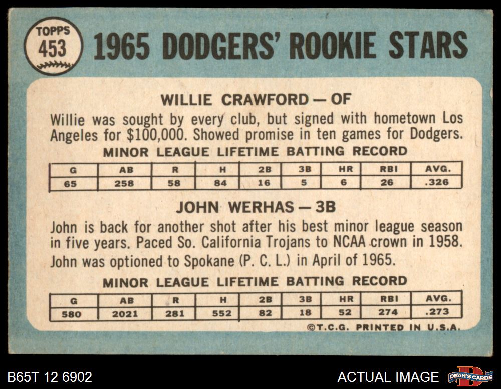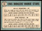 1965 Topps #453 - Willie Crawford / John Werhas Dodgers Rookies 2 - GOOD