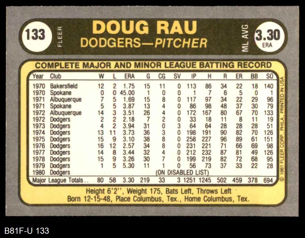 1981 Fleer #133 Doug Rau
