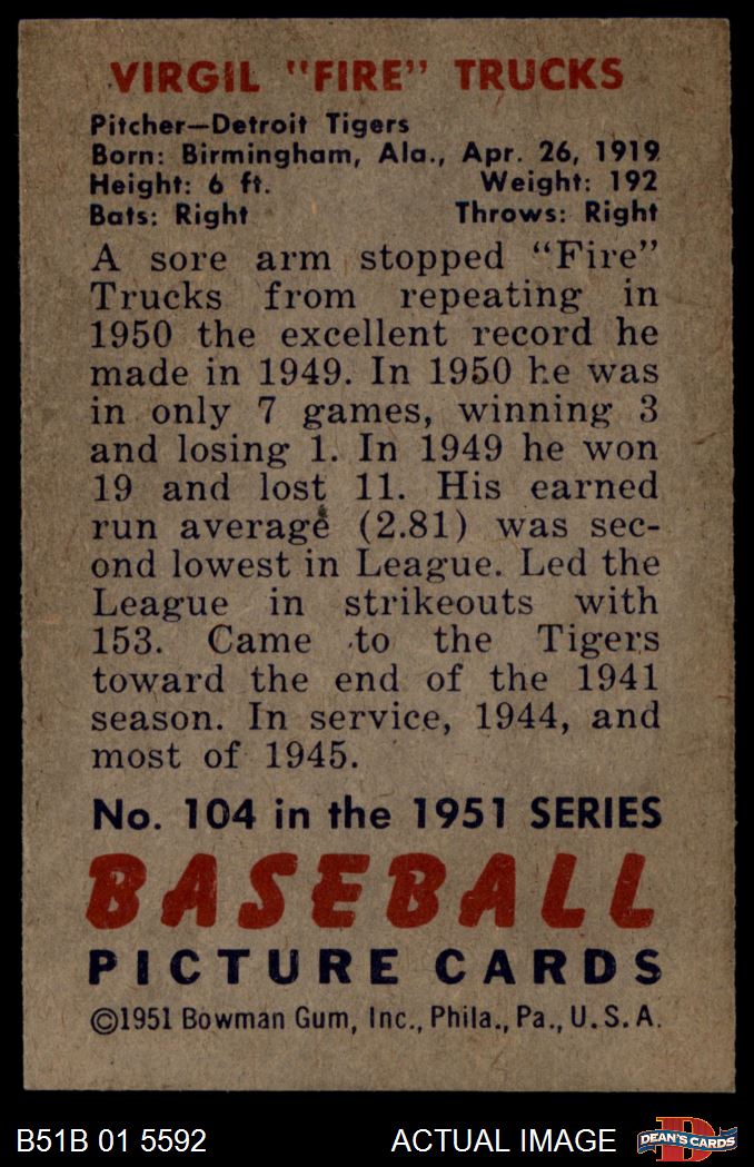 1951 Bowman #104 Virgil Trucks 4 - VG/EX