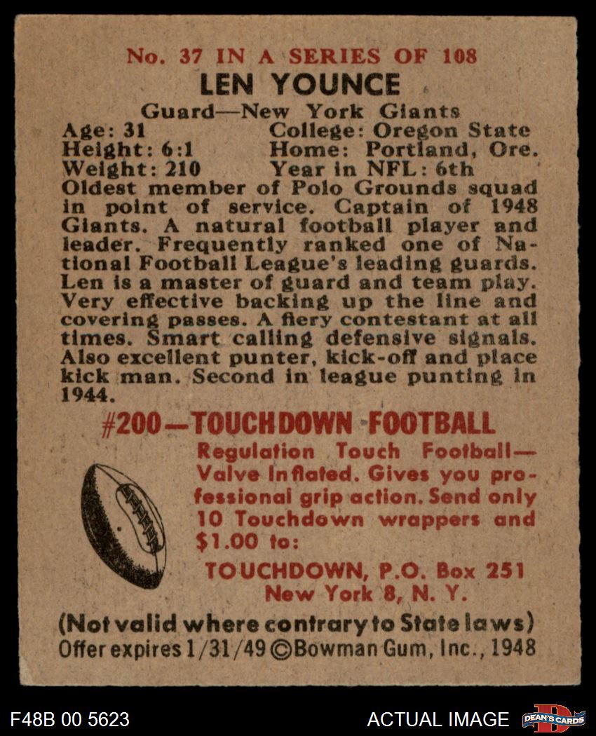 1948 Bowman #37 Len Younce 6 - EX/MT