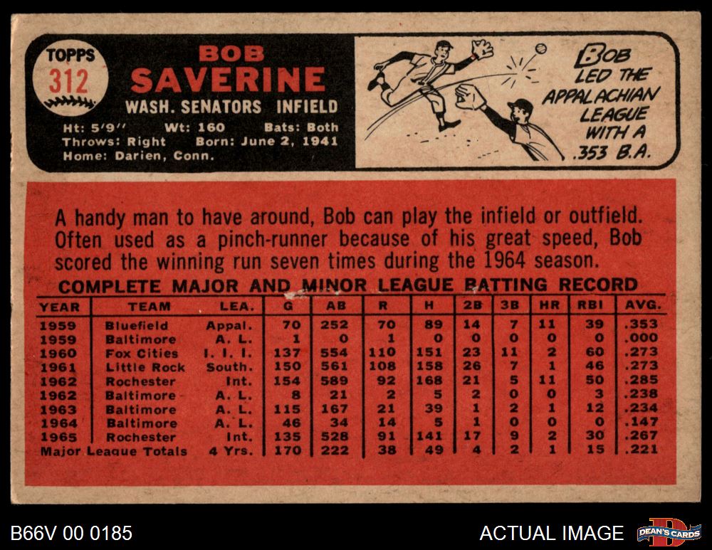1966 Topps Venezuelan #312 Bob Saverine 4.5 - VG/EX+