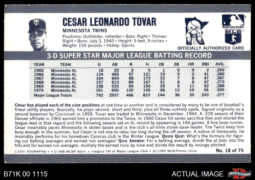 1971 Kellogg's #18 Cesar Tovar 7 - NM
