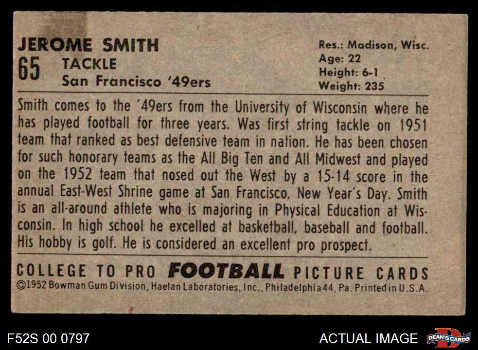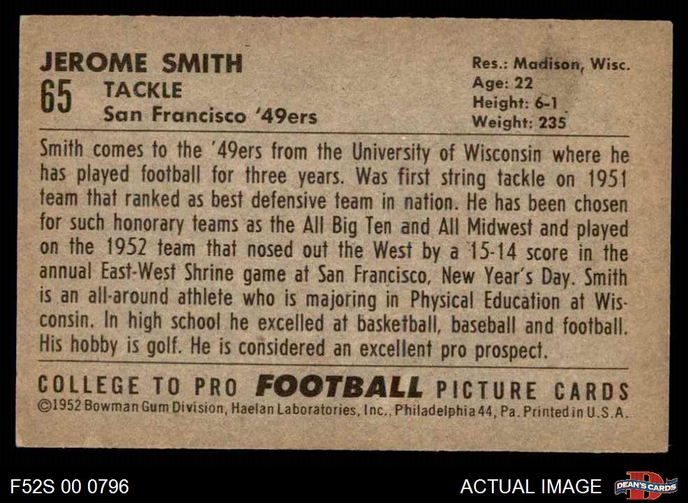1952 Bowman Small #65 Jerome Smith 4 - VG/EX