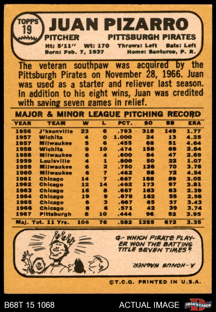 1968 Topps #19 A Juan Pizarro 6 - EX/MT
