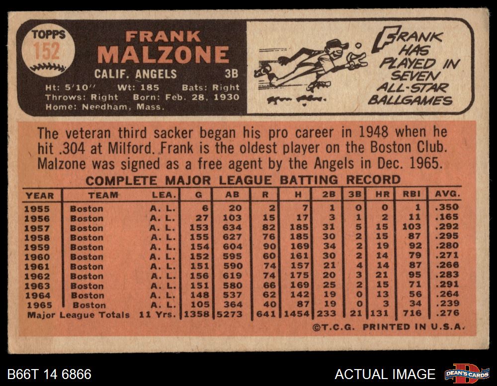 1966 Topps #152 Frank Malzone 2 - GOOD