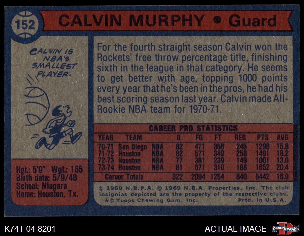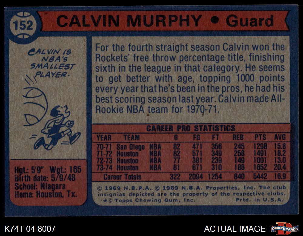 1974 Topps #152 Calvin Murphy 7 - NM