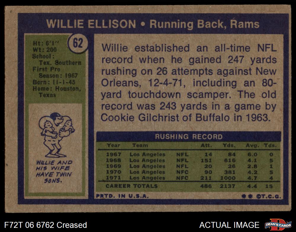 1972 Topps #62 Willie Ellison 2 - GOOD