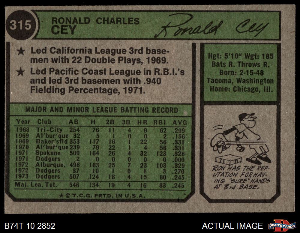 1974 Topps #315 Ron Cey 3 - VG