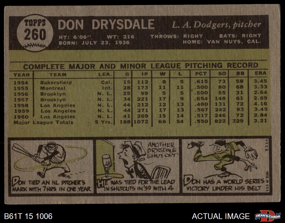 1961 Topps #260 Don Drysdale 4 - VG/EX