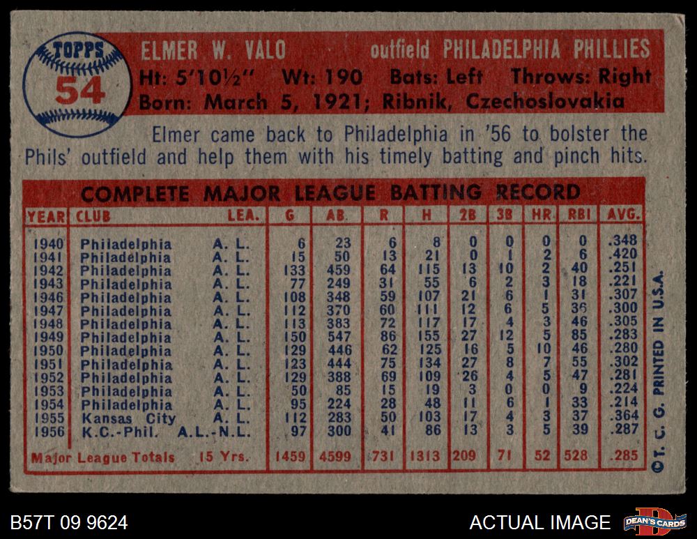 1957 Topps #54 Elmer Valo 3 - VG