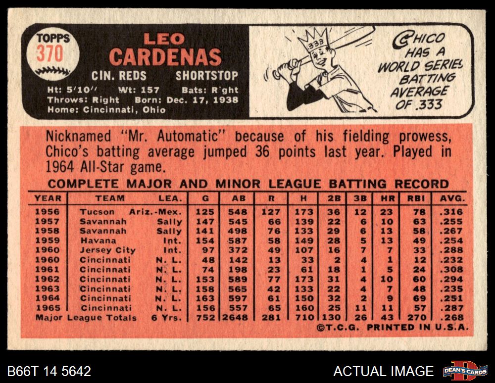 1966 Topps #370 Leo Cardenas 5 - EX