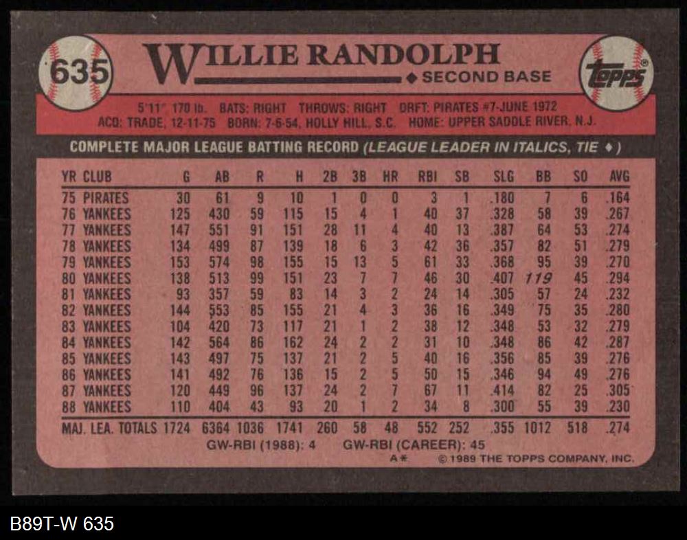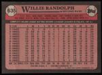 1989 Topps #635 Willie Randolph 8 - NM/MT