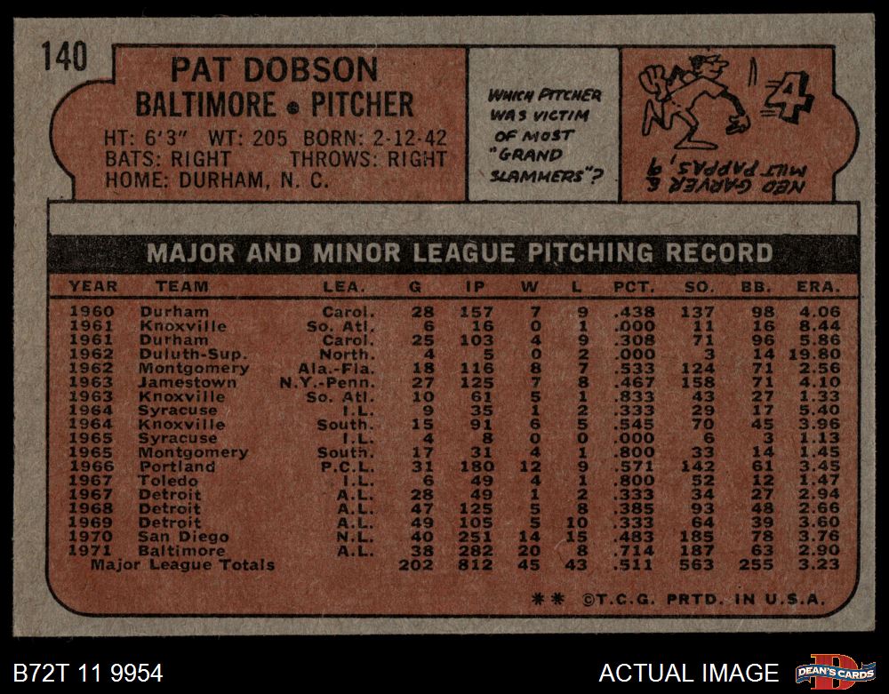 1972 Topps #140 Pat Dobson 4 - VG/EX