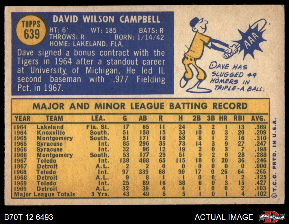 1970 Topps #639 Dave Campbell 4 - VG/EX