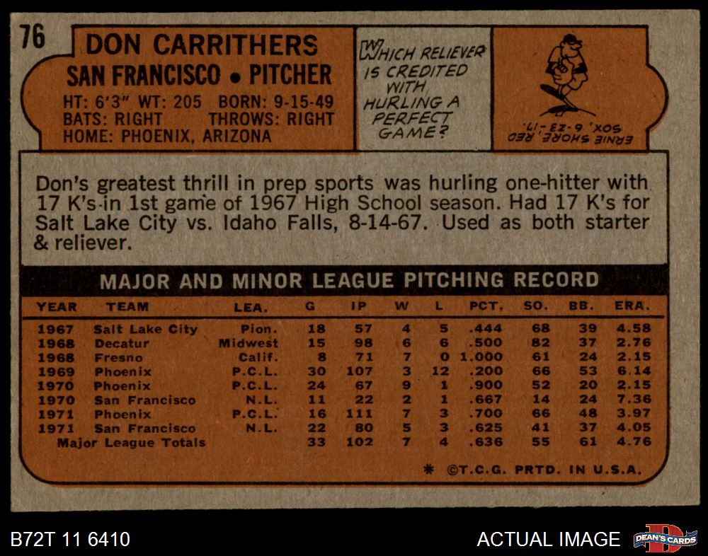 1972 Topps #76 Don Carrithers 4 - VG/EX
