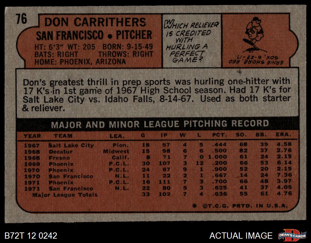 1972 Topps #76 Don Carrithers 5.5 - EX+