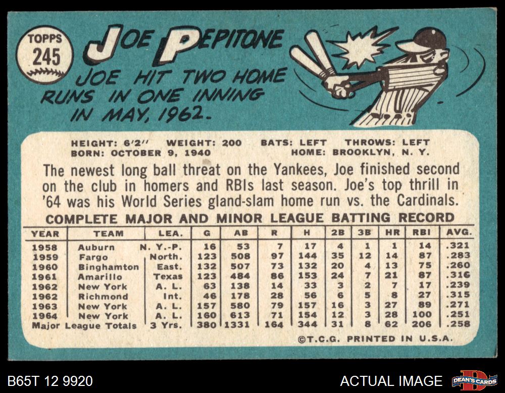 1965 Topps #245 Joe Pepitone 5 - EX