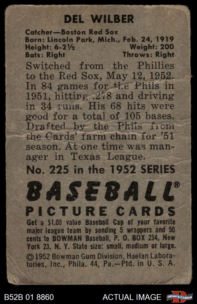 1952 Bowman #225 Del Wilber AUTHENTIC
