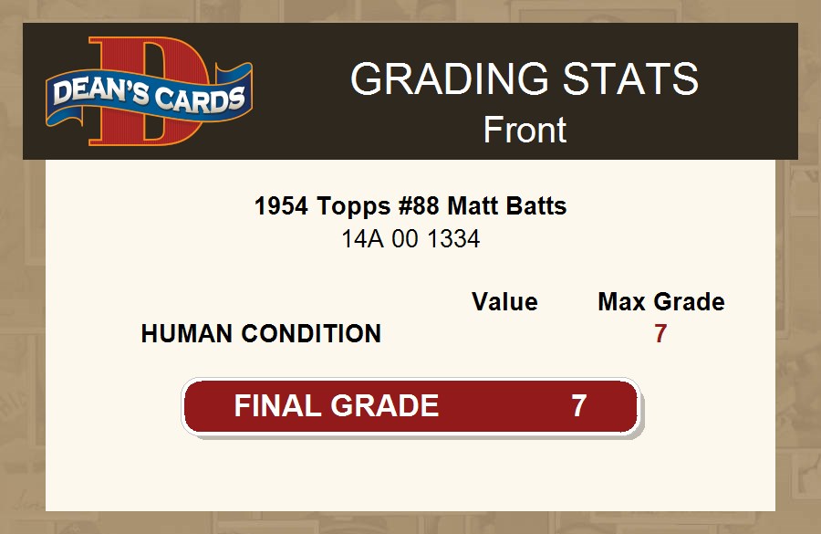 1954 Topps #88 Matt Batts PSA 7 - NM
