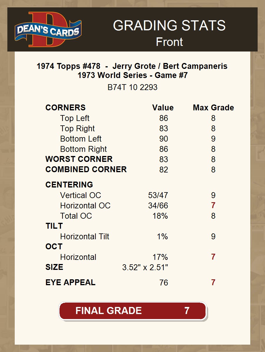 1974 Topps #478 - Jerry Grote / Bert Campaneris 1973 World Series - Game #7 7 - NM