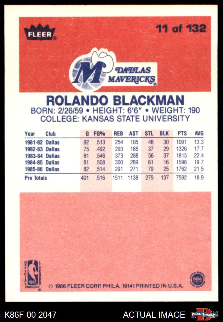 1986 Fleer #11 Rolando Blackman 8 - NM/MT