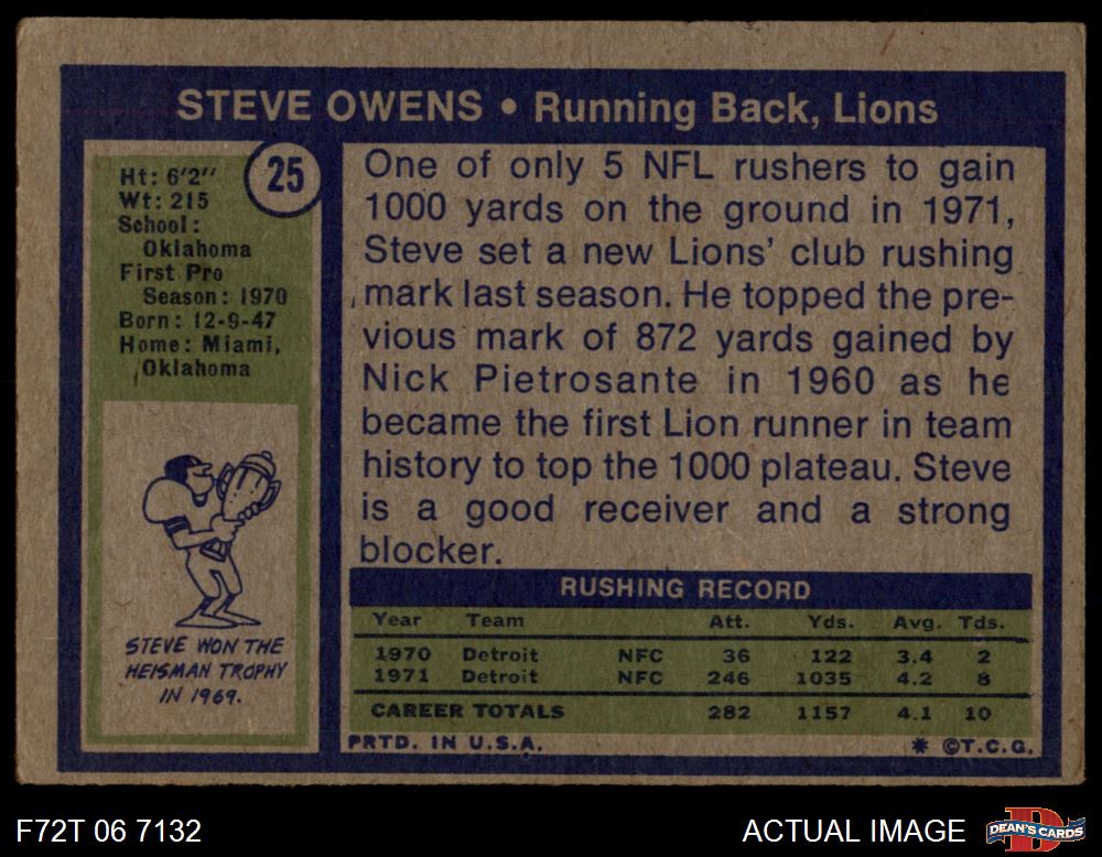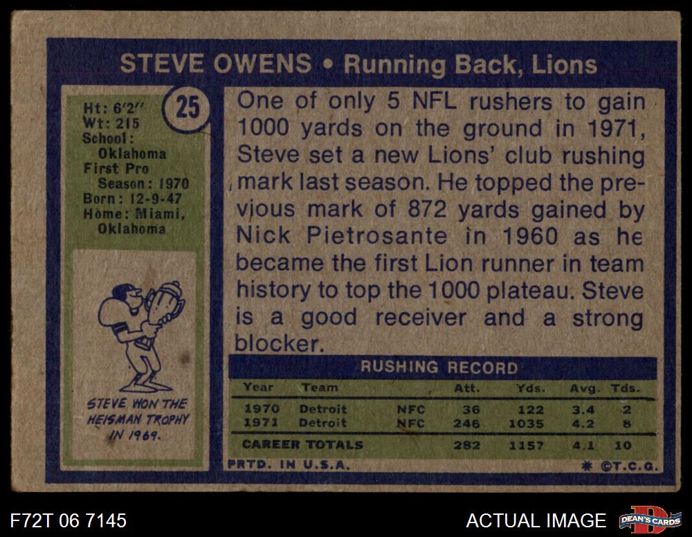 1972 Topps #25 Steve Owens 1.5 - FAIR