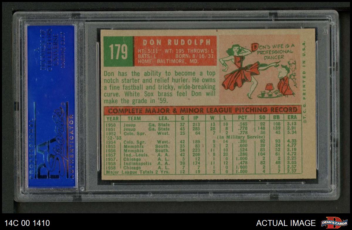1959 Topps #179 Don Rudolph PSA 8 - NM/MT