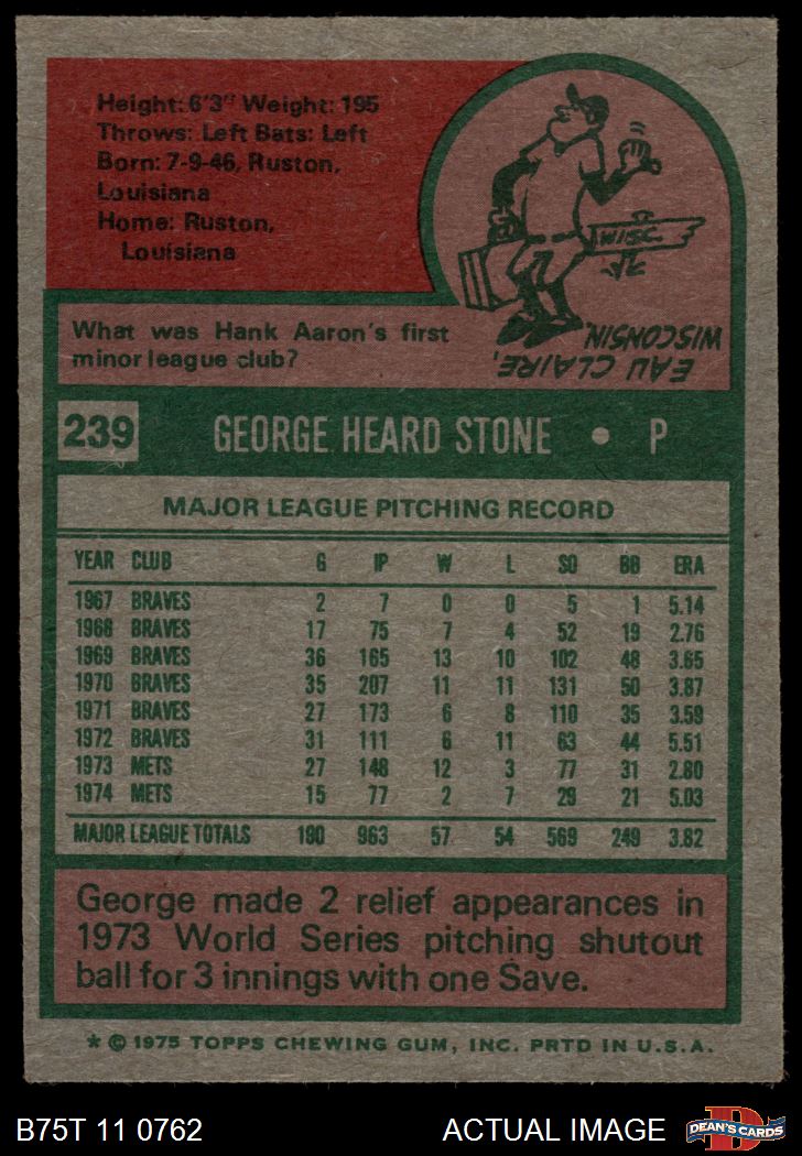 1975 Topps #239 George Stone 4 - VG/EX