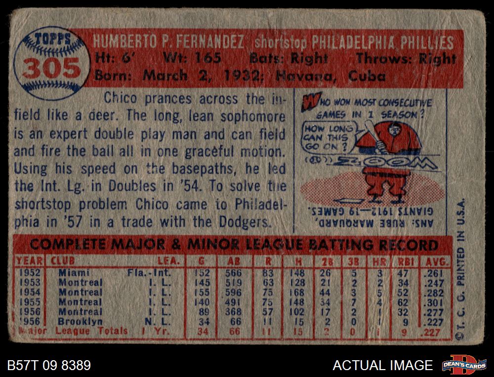 1957 Topps #305 Chico Fernandez AUTHENTIC