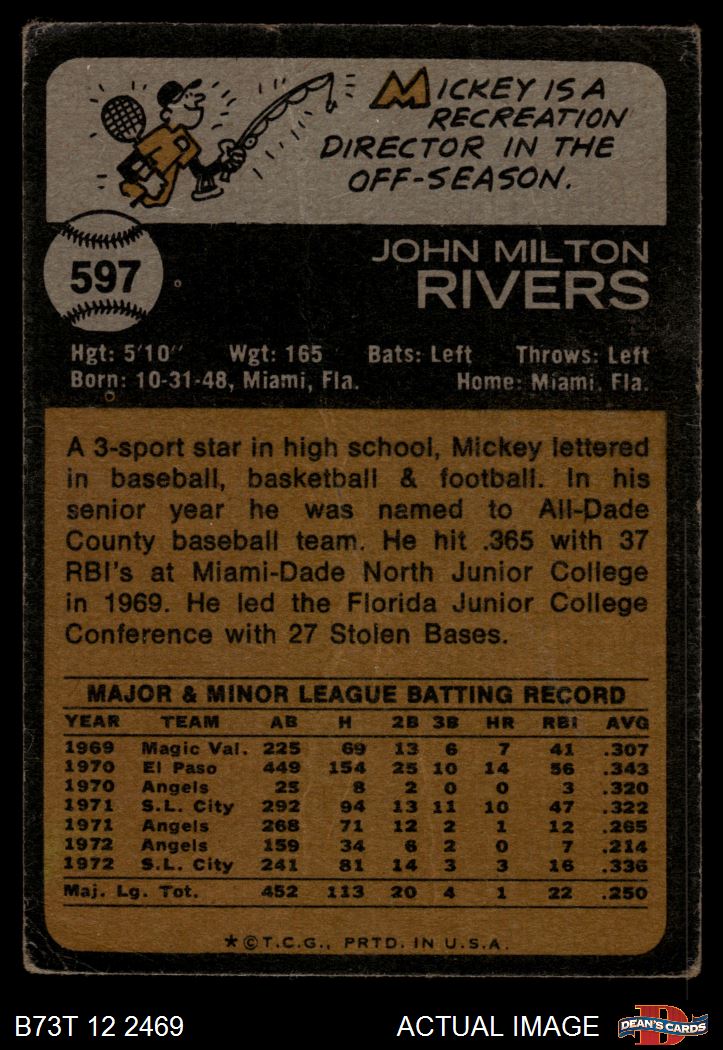 1973 Topps #597 Mickey Rivers 1 - POOR