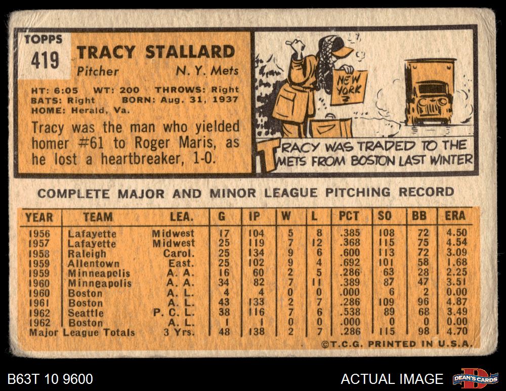 1963 Topps #419 Tracy Stallard 1 - POOR