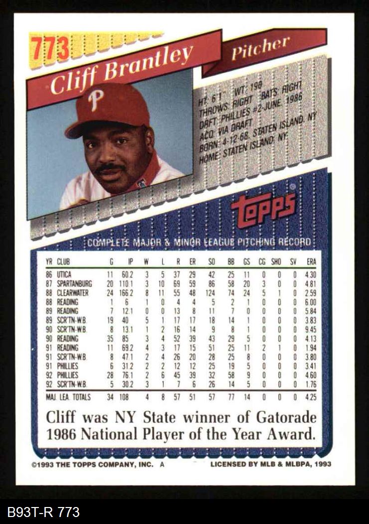 1993 Topps #773 Cliff Brantley