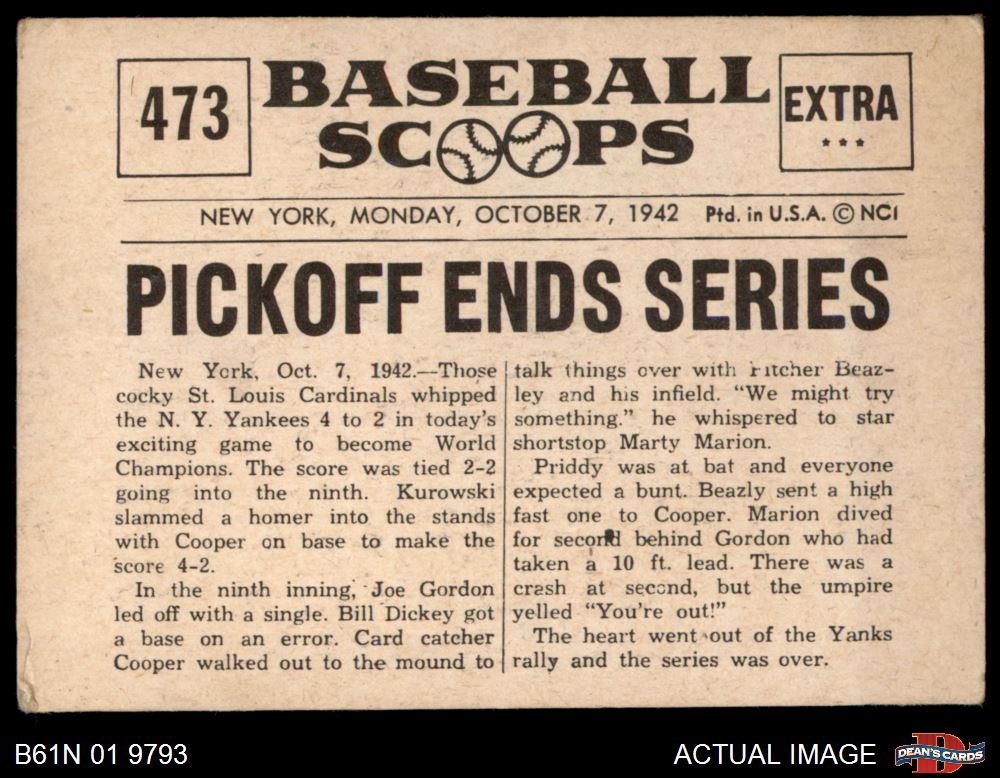 1961 Nu-Card Scoops #473 - Marty Marion Pickoff Ends Series 2 - GOOD
