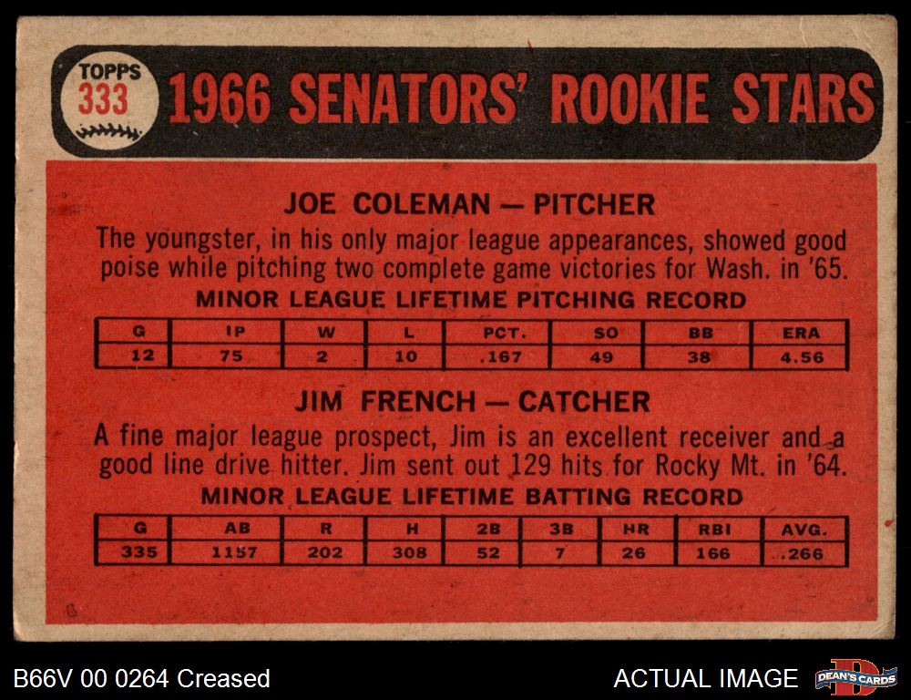 1966 Topps Venezuelan #333 - Joe Coleman / Jim French Senators Rookies 3 - VG
