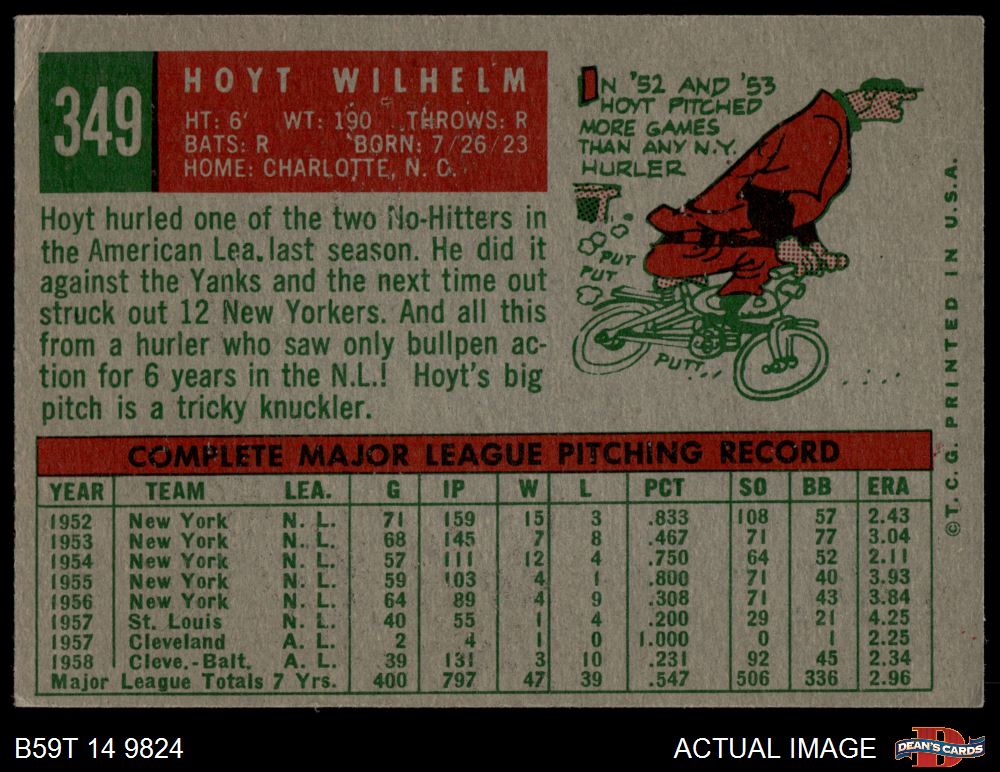 1959 Topps #349 Hoyt Wilhelm 4 - VG/EX