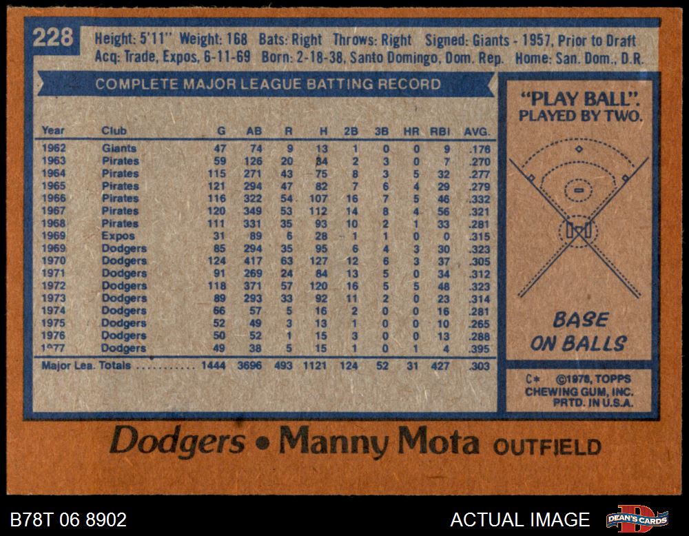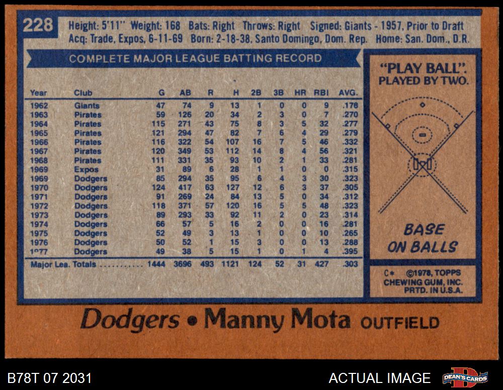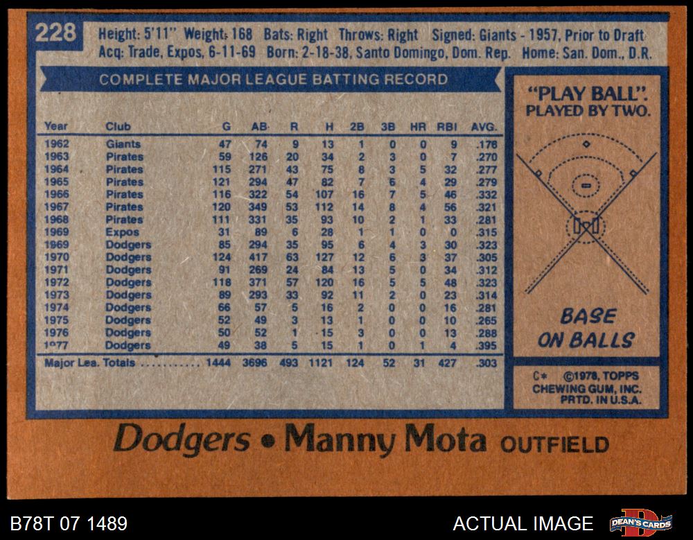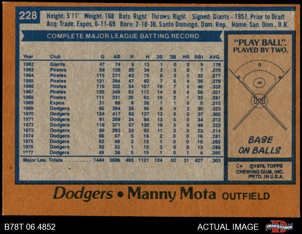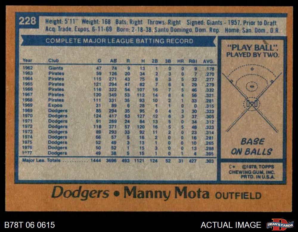 1978 Topps #228 Manny Mota 6 - EX/MT