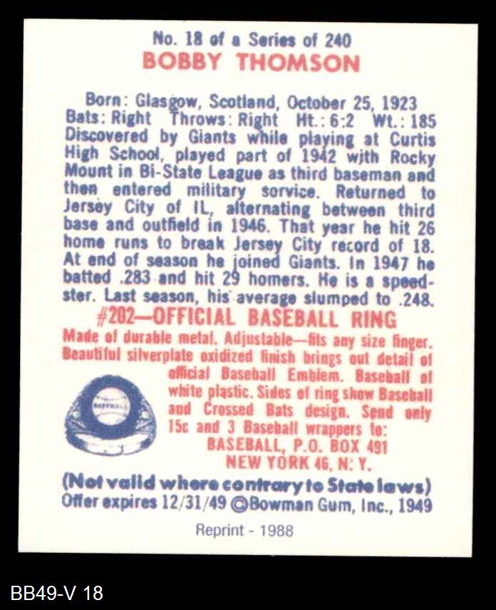1949 Bowman Reprint (1,221 available)1949 Bowman REPRINT Giants (128 available)