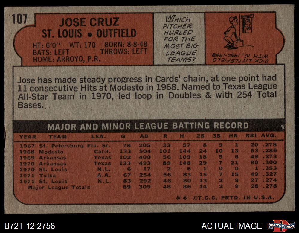 1972 Topps #107 Jose Cruz 2 - GOOD