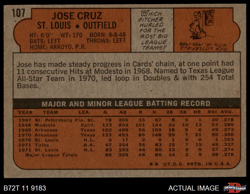 1972 Topps #107 Jose Cruz 5 - EX