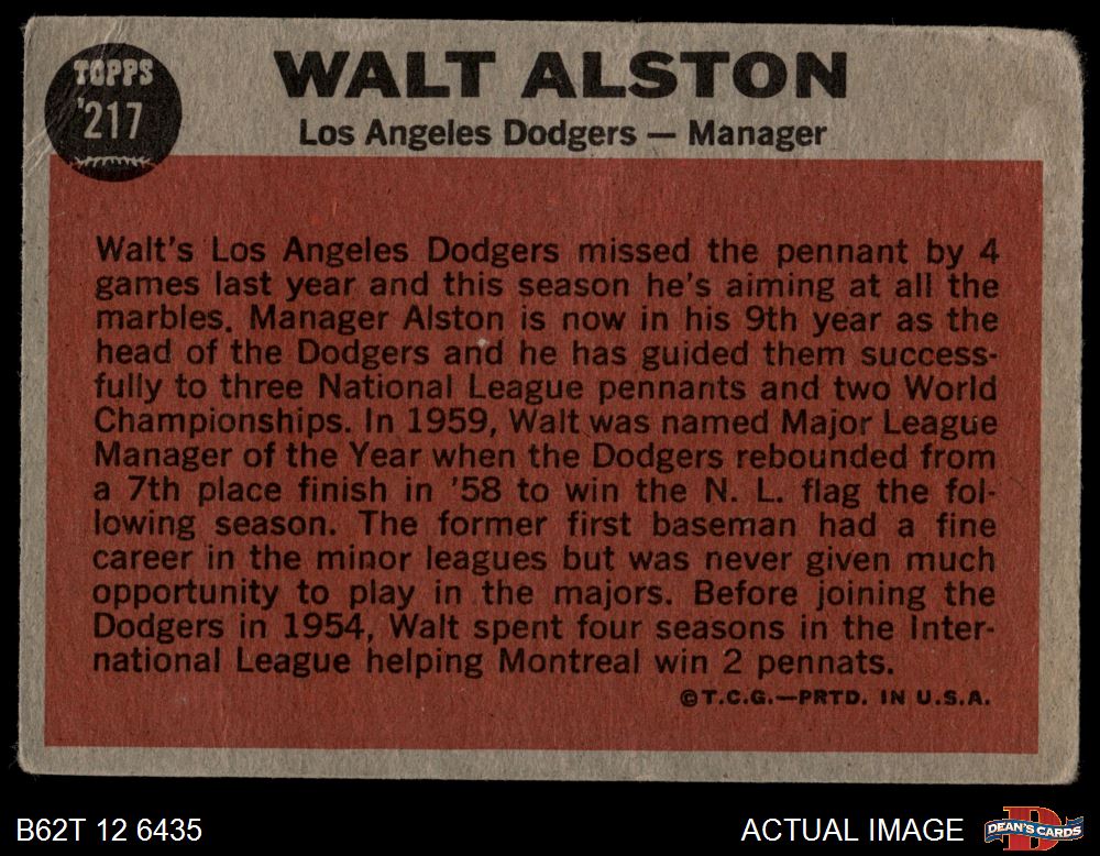 1962 Topps #217 Walt Alston 1.5 - FAIR