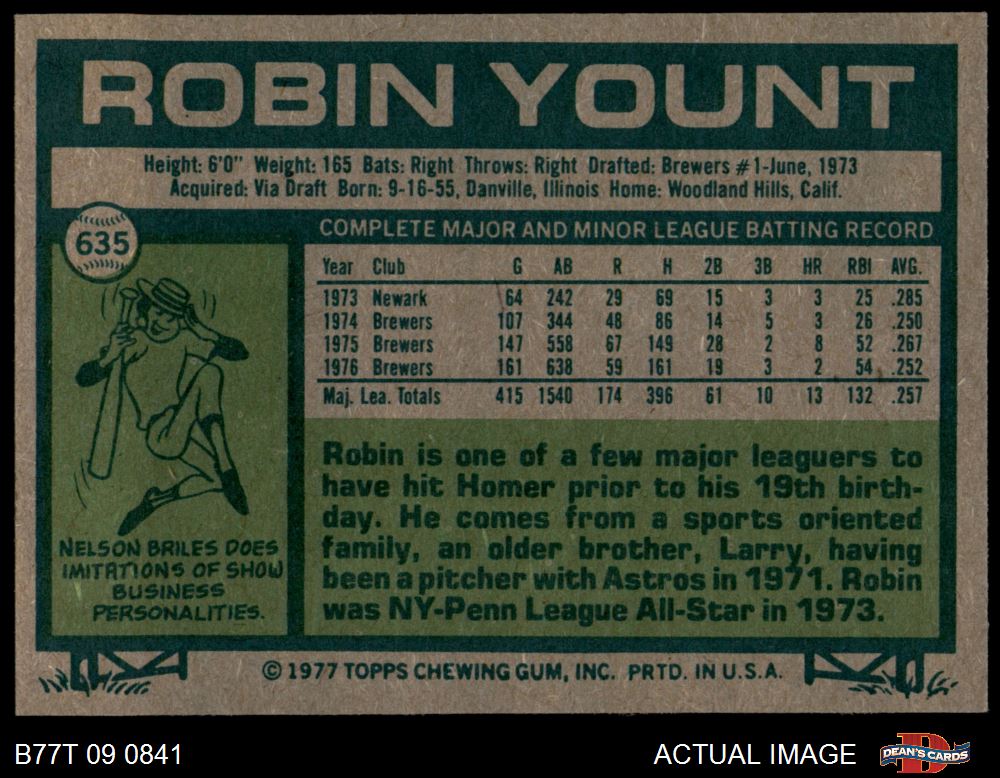 1977 Topps #635 Robin Yount 5 - EX