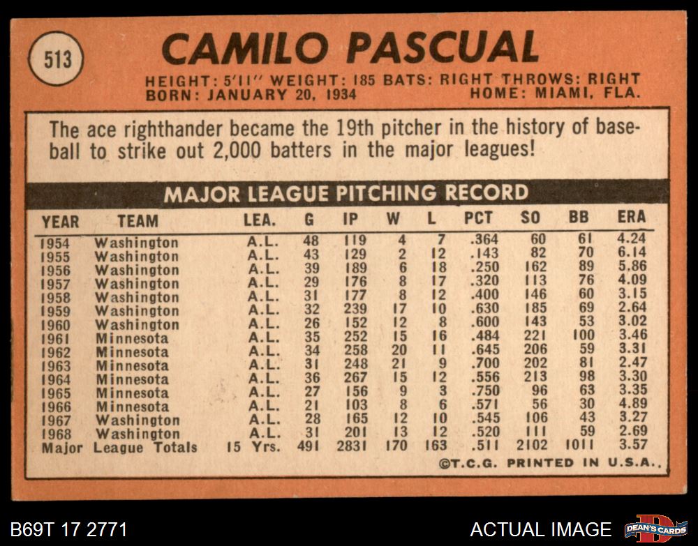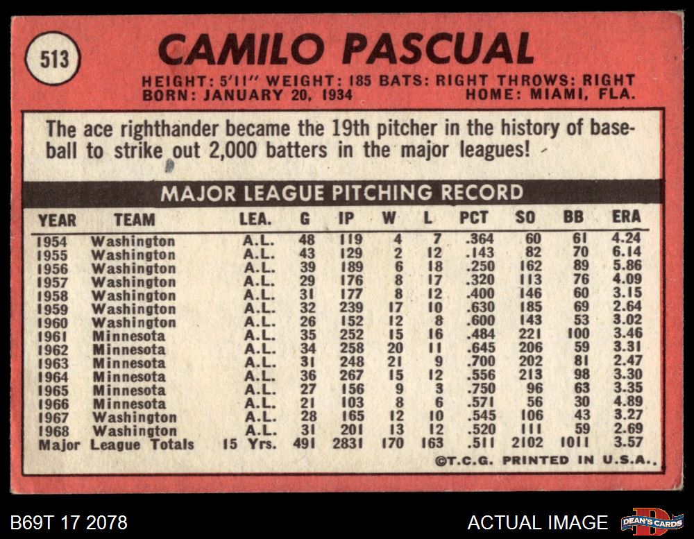 1969 Topps #513 Camilo Pascual