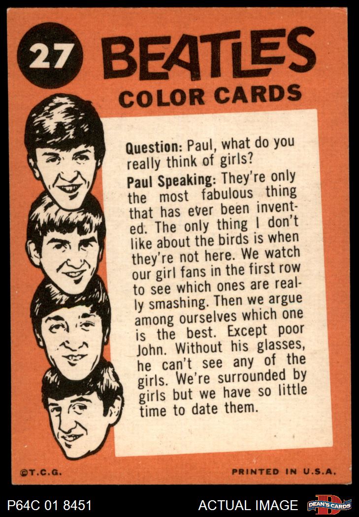 1964 Topps Beatles Color #27 Ringo, Paul and George performing 5 - EX