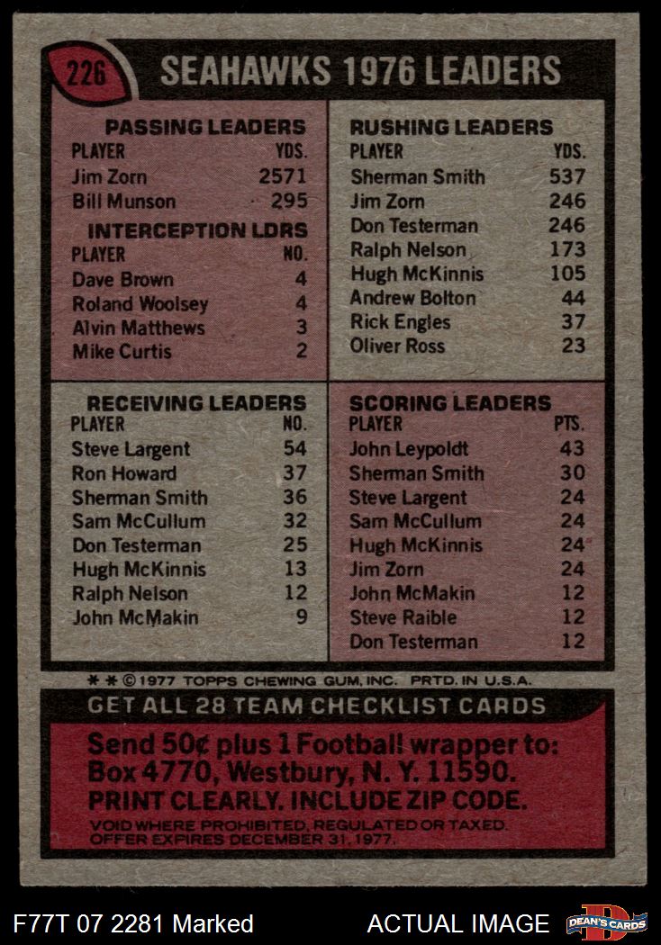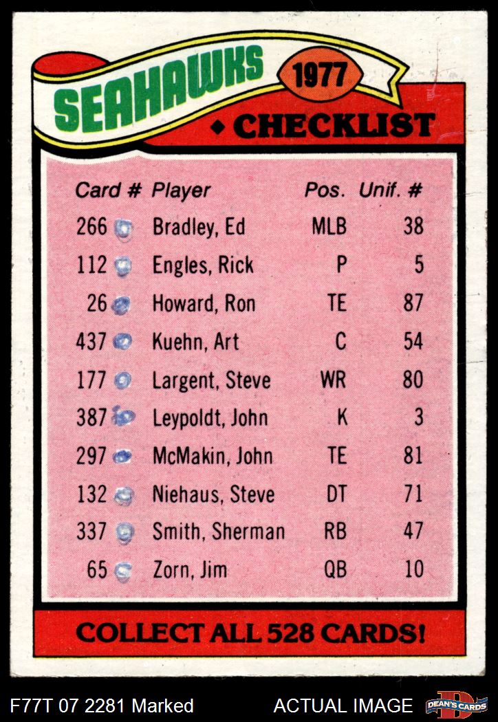1977 Topps #226  Seahawks Team Checklist Front Thumbnail