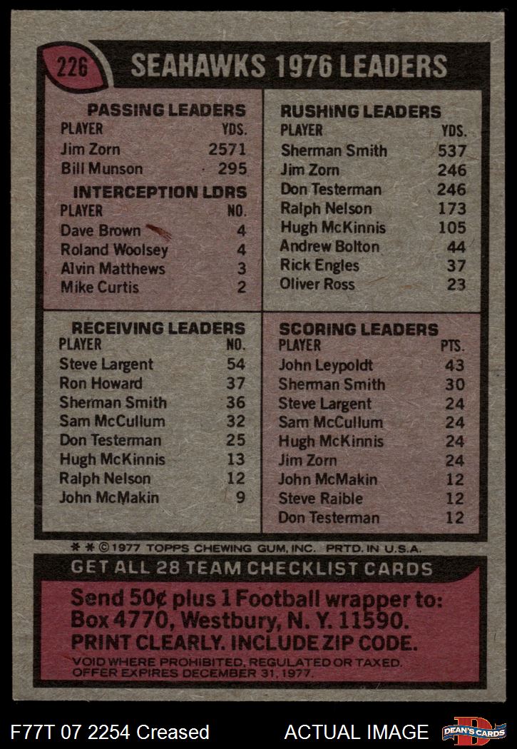 1977 Topps #226  Seahawks Team Checklist Front Thumbnail
