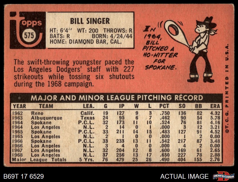 1969 Topps #575 Bill Singer 1.5 - FAIR