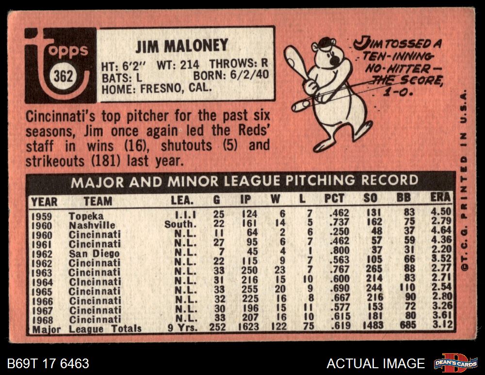 1969 Topps #362 Jim Maloney 2 - GOOD