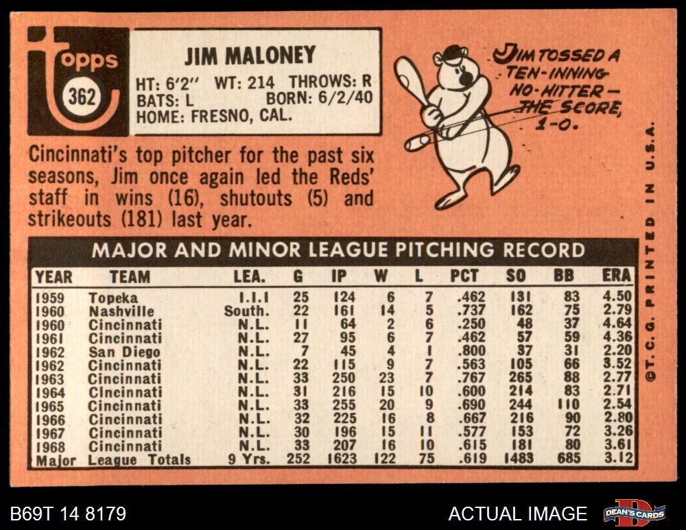 1969 Topps #362 Jim Maloney 6 - EX/MT