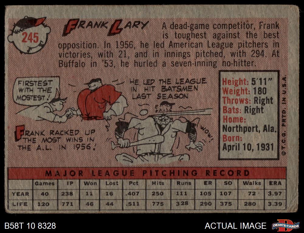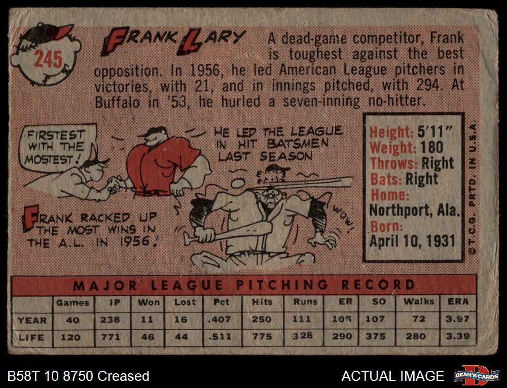 1958 Topps #245 Frank Lary 1.5 - FAIR