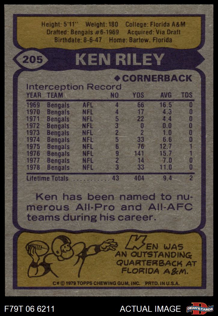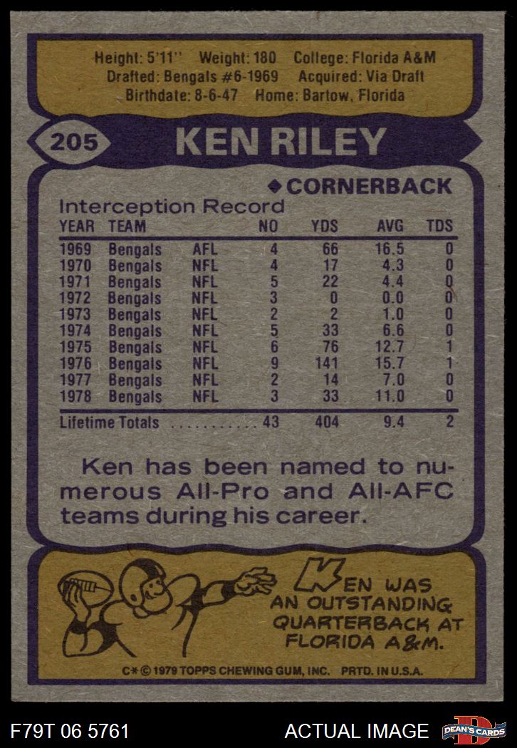 1979 Topps #205 Ken Riley 7.5 - NM+